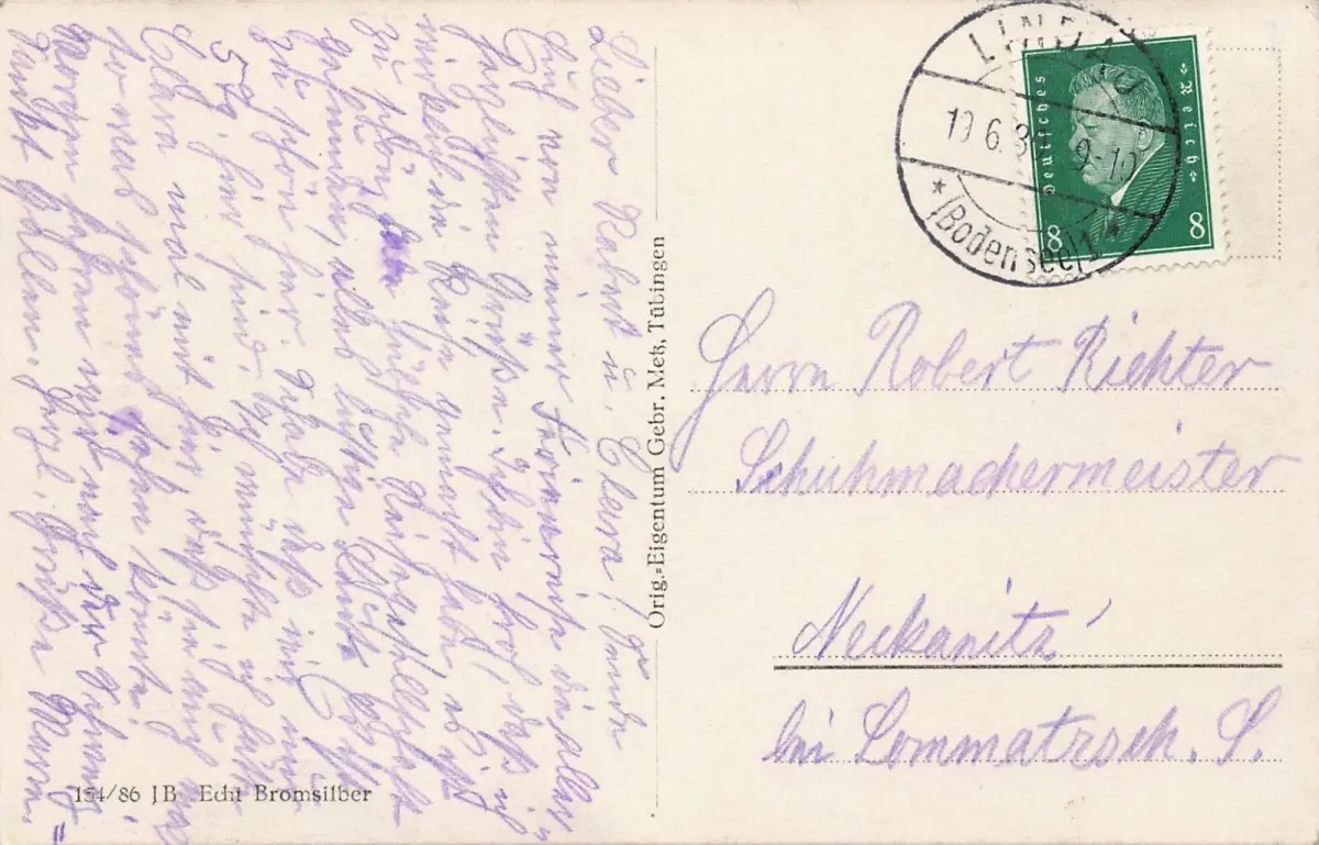 Rückseite: gelaufen 1930