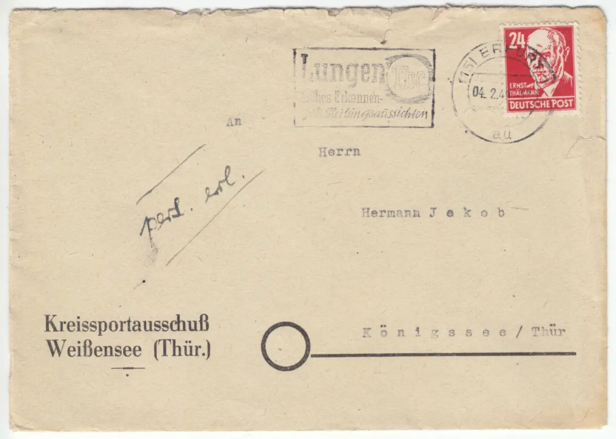 Empfänger: Privatperson Königsee (Thür)Porto: 024 Nebenstempel: keine Der