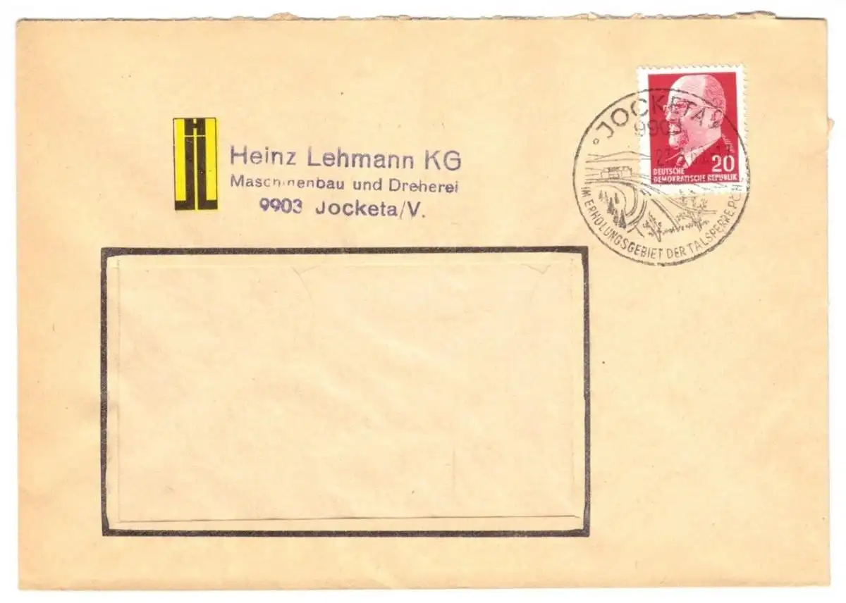 Absender: Heinz Lehmann KG, Maschinenbau und Dreherei, 9903 Jocketa / V.