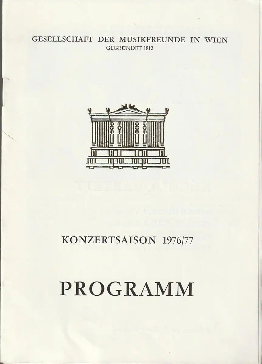 Geselllschaft der Musikfreunde in Wien: Programmheft Quartett -Zyklus 1. Konzert 4. Oktober 1976 Küchl-Quartett Theater Der Jugend Konzertsaison 1976 / 77.