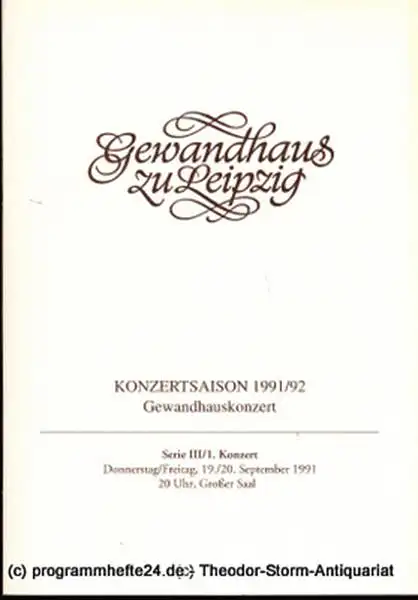 Gewandhaus zu Leipzig, Gewandhauskapellmeister Kurt Masur, Herklotz Renate, Schaaf Renate: Programmheft Gewandhauskonzert. Serie III / 1. Konzert. Blätter des Gewandhauses – Spielzeit 1991 / 92.