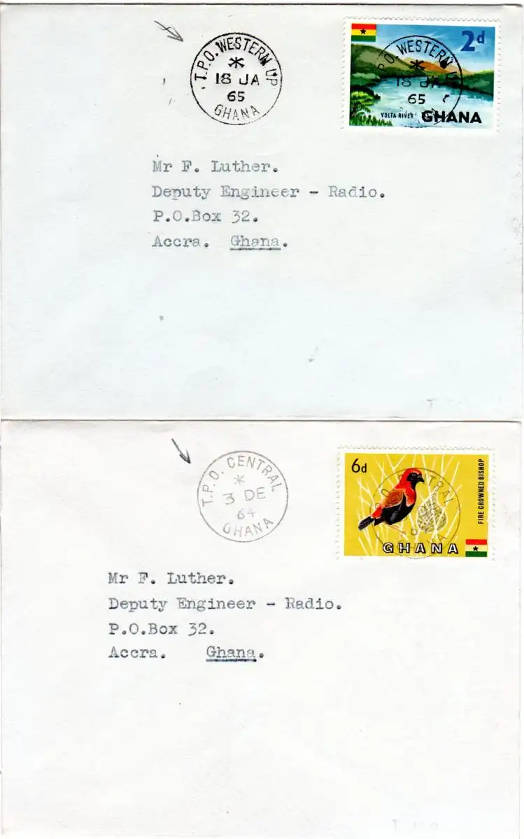 Ghana 1964/65, 2 Briefe m. verschiedenen Bahnpost Stempeln