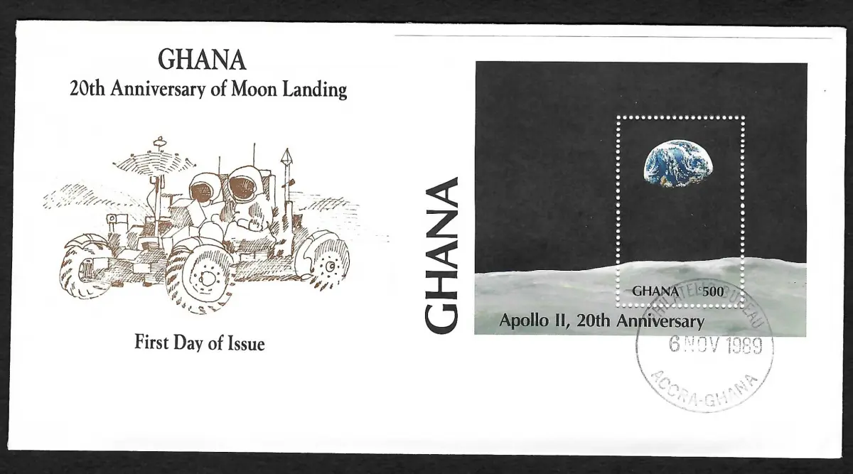 Ghana 1989: 20th Anniversary of Moon Landing, FDC, Apollo 11, Block #150