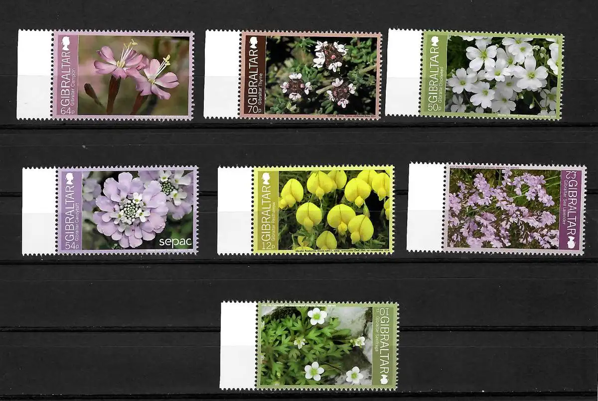 Gibraltar: Blumen: 7 Briefmarken, postfrisch