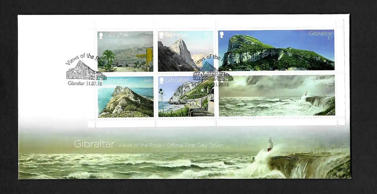 Gibraltar: Felsen von Gibraltar, 6 Marken, im Kleinbogen, FDC