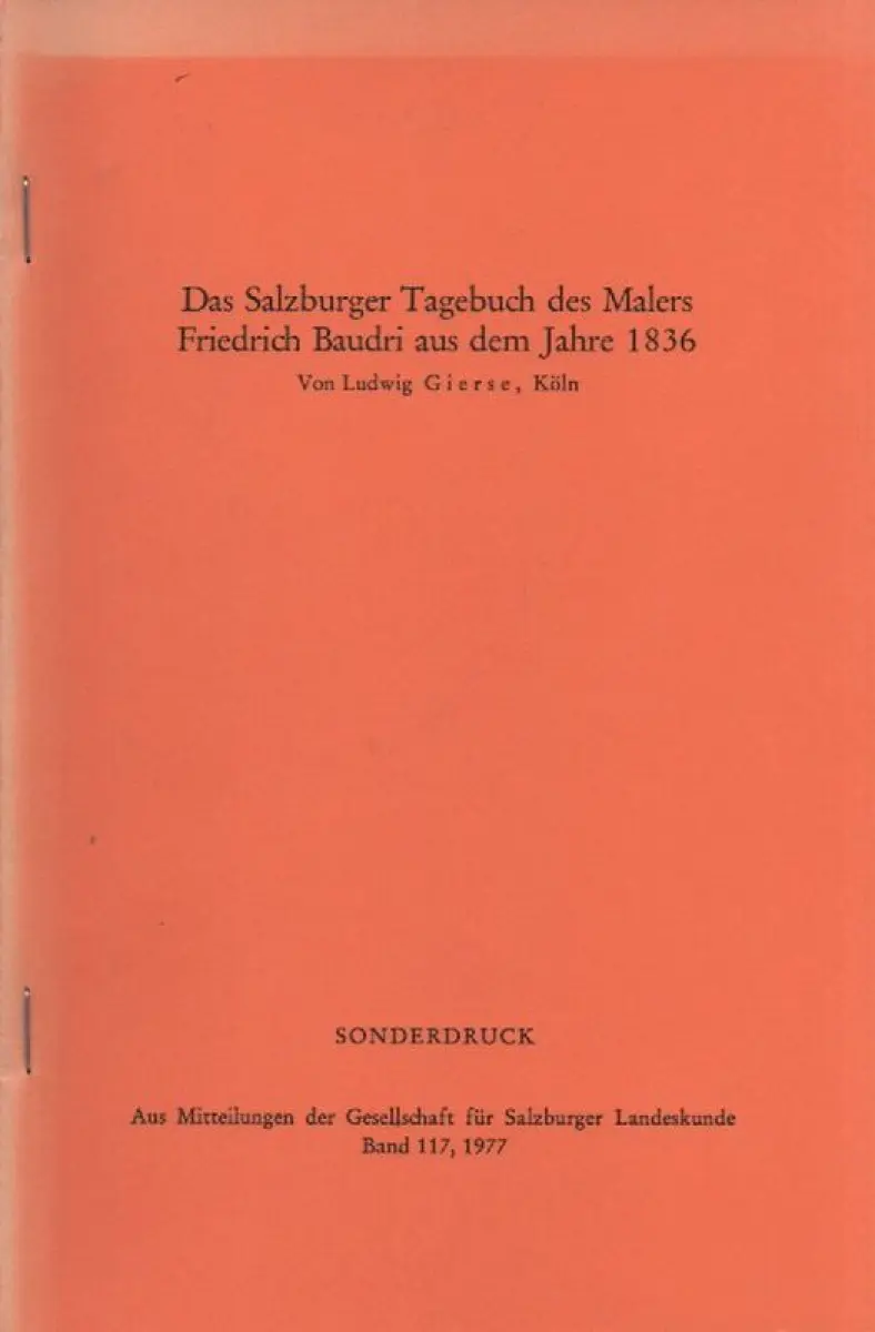 Titel: Das Salzburger Tagebuch des Malers Friedrich Baudri aus dem Jahre 1836. (Sonderdruck aus Mitteilungen der Gesellschaft für Salzburger Landeskunde, Band 117, 1977)