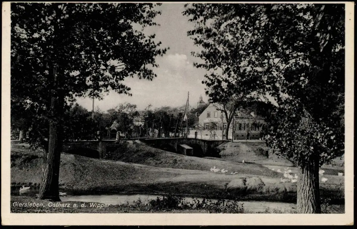 Giersleben-Saale-Wipper Ortsansicht mit einer Partie a.d. Wipper 1920