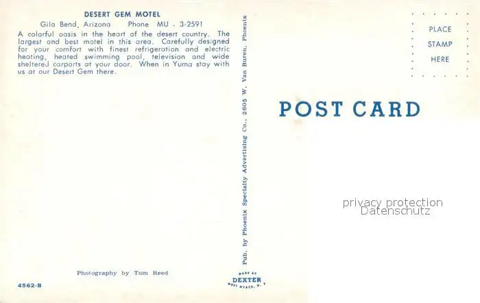 Gila_Bend Dessert Gem Motel Swimming Pool Gila_Bend postalisch nicht gelaufen nach 1965 Erhaltung siehe scans [FriedD77] Frierer