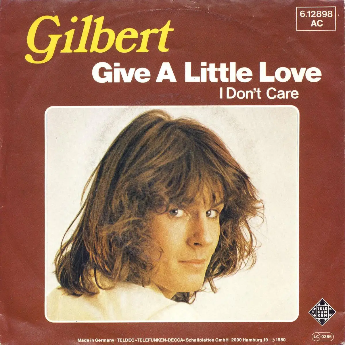 7" Single Gilbert - Give A Little Love, Zustand Platte M- Hülle VG+; Made in Germany 1980 Telefunken 6.12898 AC, Tracks 3:50, I Don't Care 3:20
