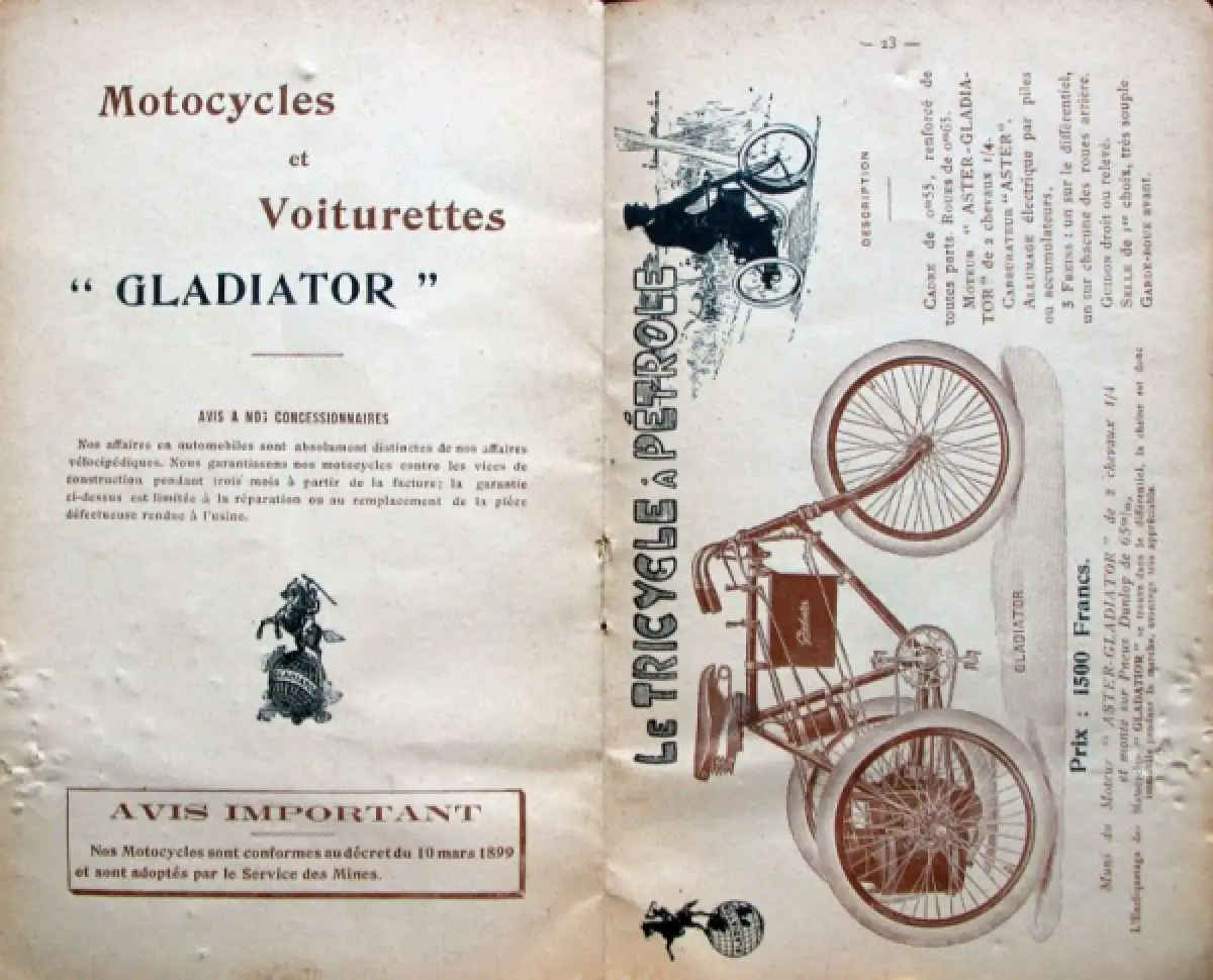 Gladiator Automobiles Cycles Modellprogramm 1900 Automobilprospekt (10773)