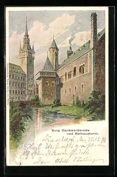 Glitzer-Perl-AK Braunschweig, Burg Dankwarderode und Rathausturm