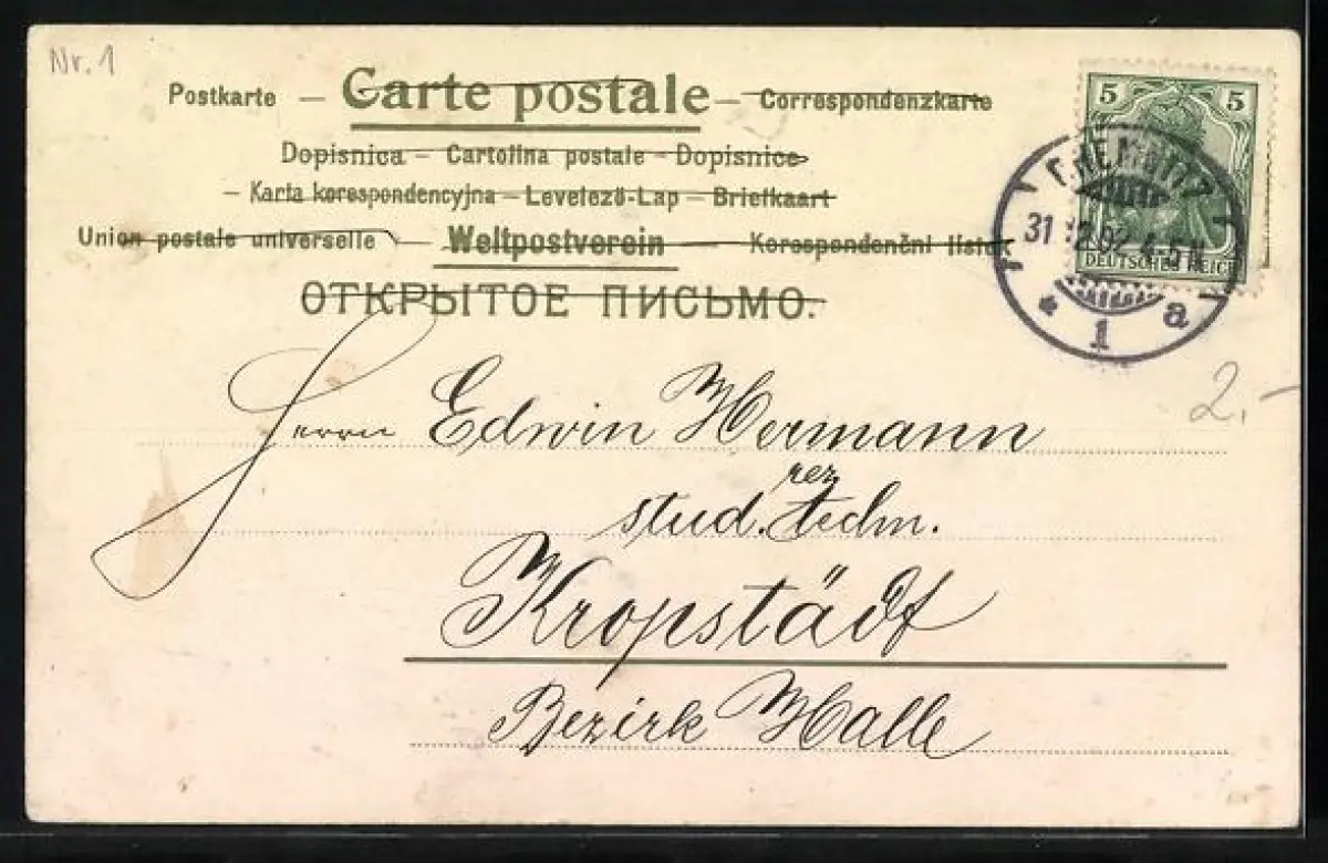 gelaufen 1902, guter Zustand