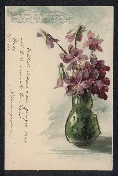 Glitzer-Perl-AK Veilchen in grüner Vase mit Glitzer-Perlen