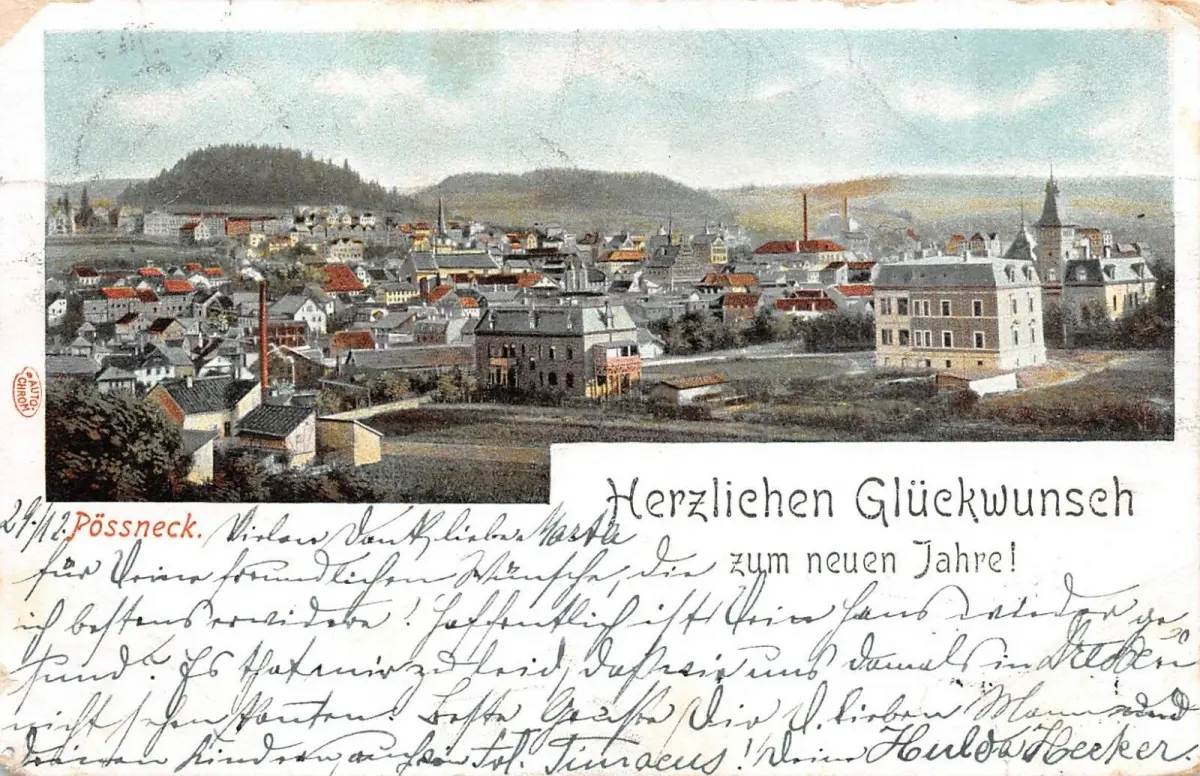 Glückwunch zum neuen Jahre ! Gesamtansicht Pössneck Thüringen Postkarte AK 1902