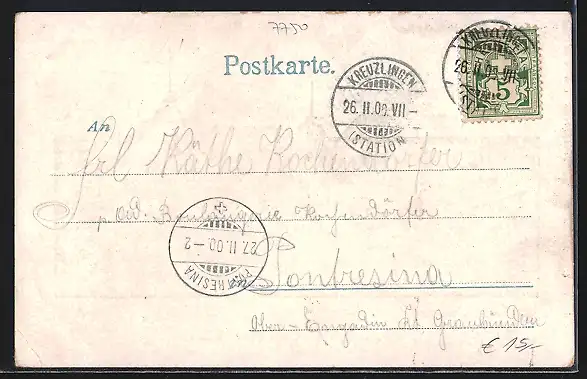 alte Ansichtskarte, gelaufen 1900, Eckknick unten re., Stempelspur, guter Zustand