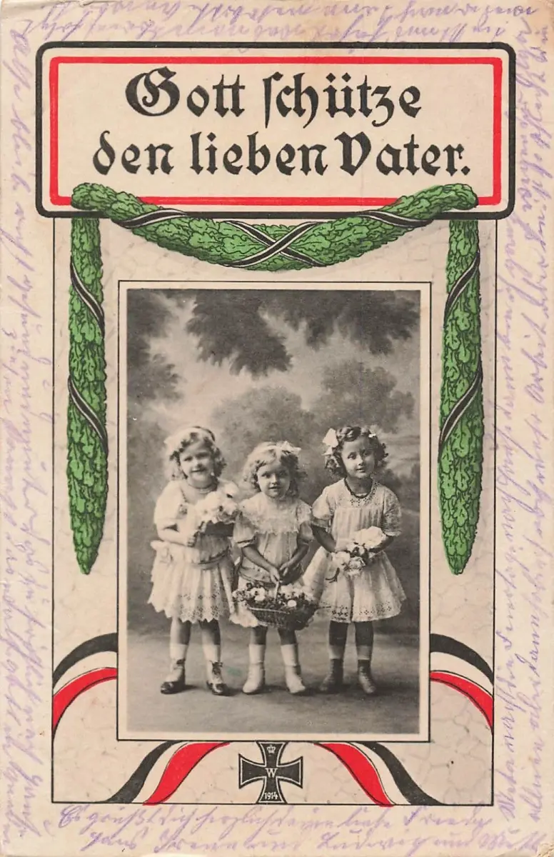 Gott schütze den lieben Vater, Kleine Mädchen, EK2 Postkarte AK
