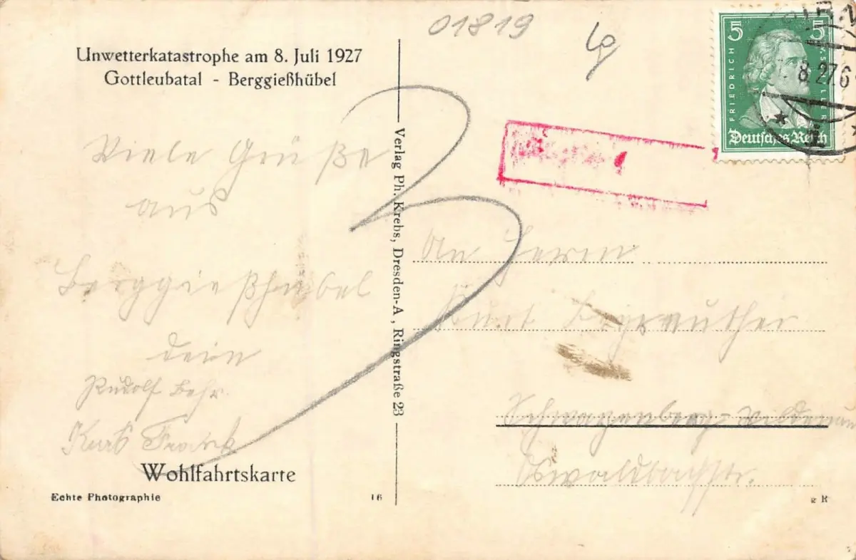 Gottleubatal Berggießhübel Unwetterkatastrophe 1927 Postkarte AK 1927