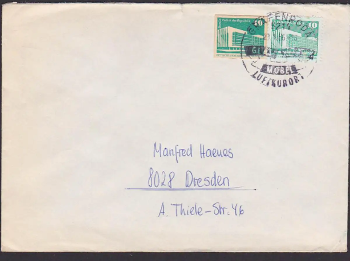 Gräfenroda Möbel Luftkurort soz. Aufbau Palast der Republik Ganzsachenausschnitt und normale Marke