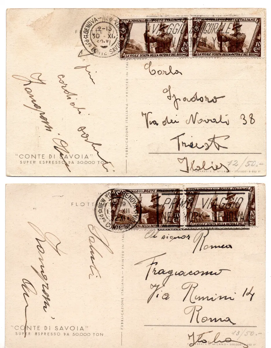 Graf von Savoyen - Zwei annullierte Schiffskarten mit mechanischem Stempel - Graf von Savoyen - Zwei annullierte Schiffskarten mit mechanischem Stempel Viaggio Inaugurale Genua - New York und New York - Genua vom 30.11.32 bzw. 14.12.32 (Kat. Ornaghi n. 226/227) - Seltene Nr. 150/5