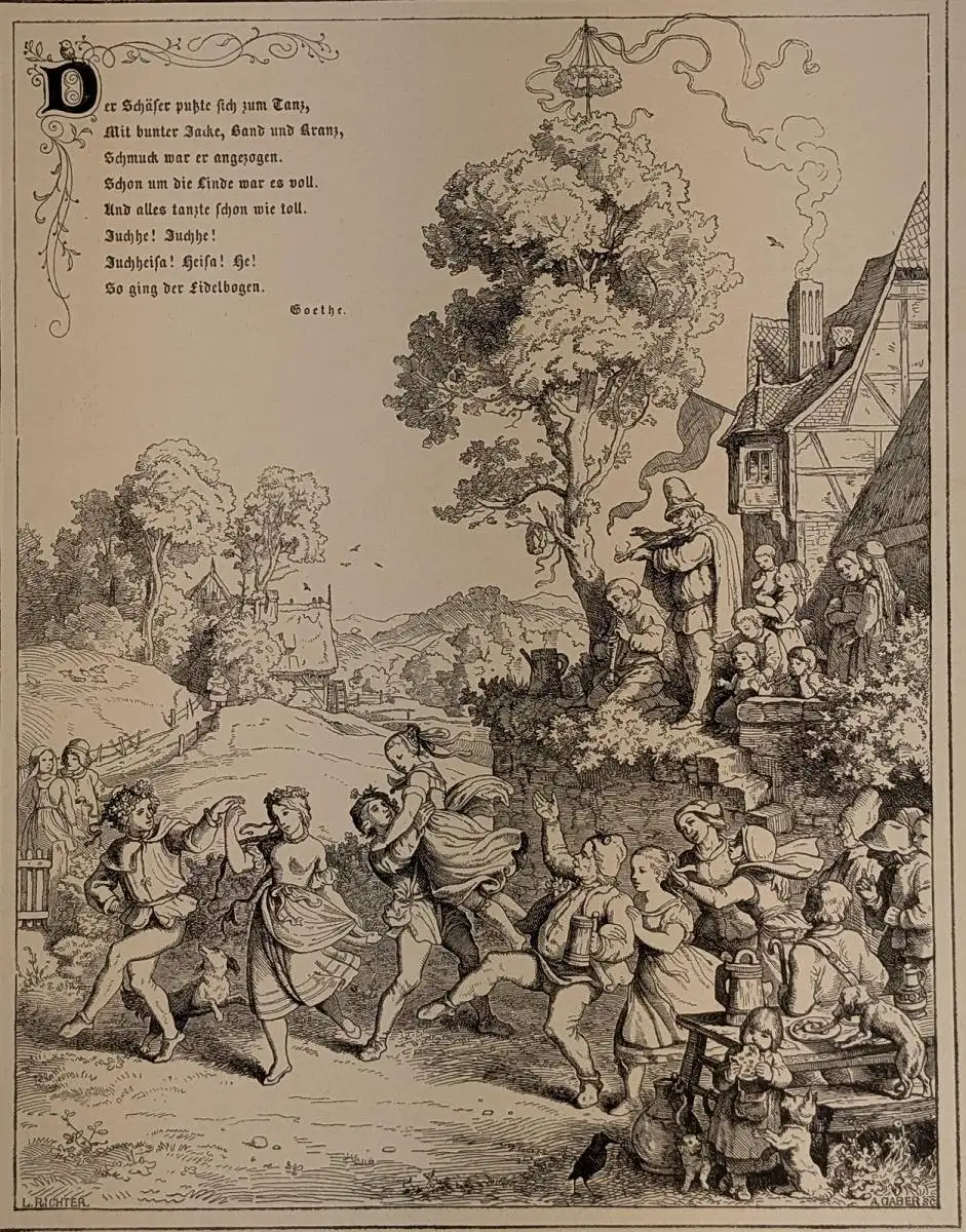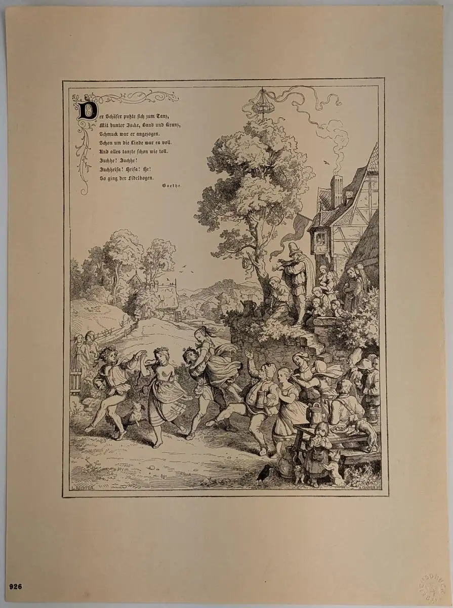 Bemerkungen: Zustand: Gut. Das Blatt ist altersbedingt leicht gebräunt mit leicht beriebenen Rändern // Es handelt sich um einen Facsimile-Druck einer Zeichnung von Adrian Ludwig Richter, gedruckt in der Reichsdruckerei Berlin. Im Druck befindet sich ein Text von Johann Wolfgang von Goethe. Ludwig Richter (1803-1884) war ein bedeutender deutscher Maler, Zeichner, Grafiker und Illustrator der Romantik. Er zählt zu den bekanntesten Vertretern der Spätromantik und des Biedermeier in der deutschen Kunstgeschichte.