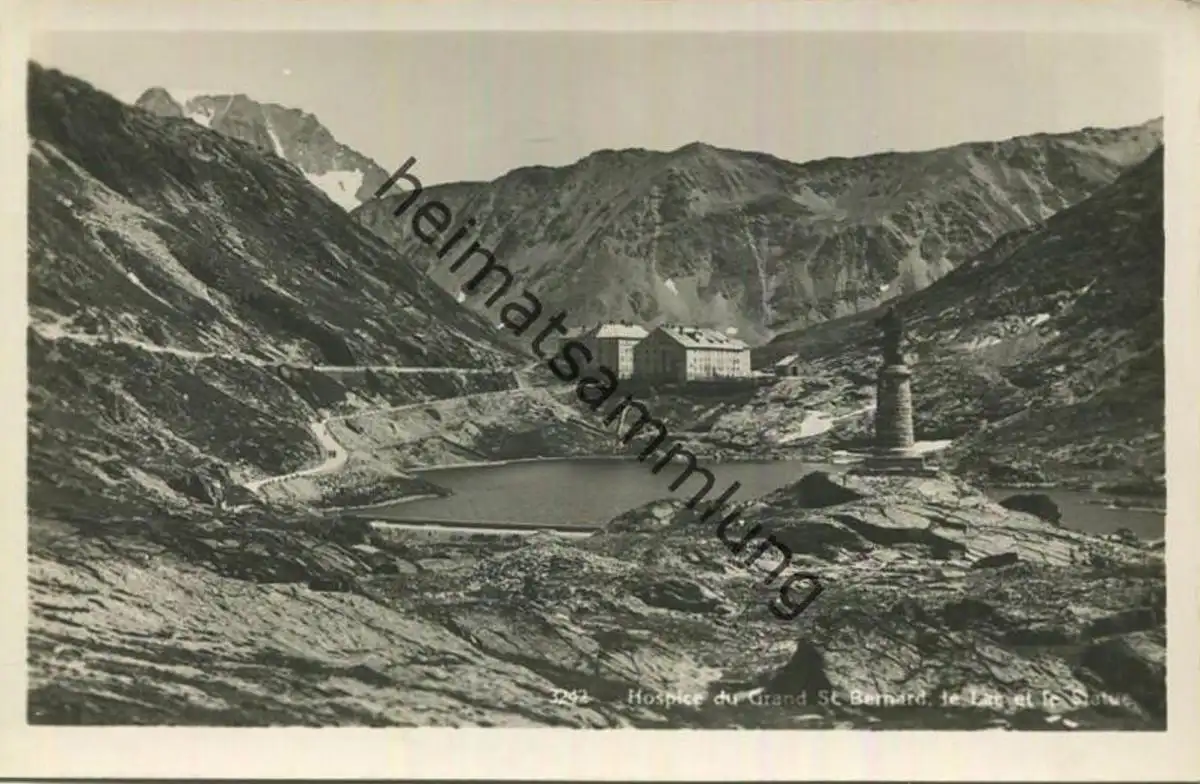 Grand St. Bernard - Hospice - le lac et le Statue - Foto-AK - Edition Georges Jaeger Geneve