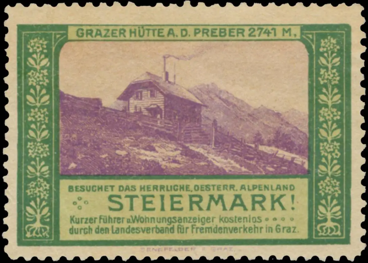 Besuchest das herrliche österreich. Alpenland Steiermark! Druck: Senefelder, Graz, Österreich, Größe/Zustand: 4x5 , guter Zustand, Original alte Reklamemarke die seinerzeit für die Werbung benutzt wurde