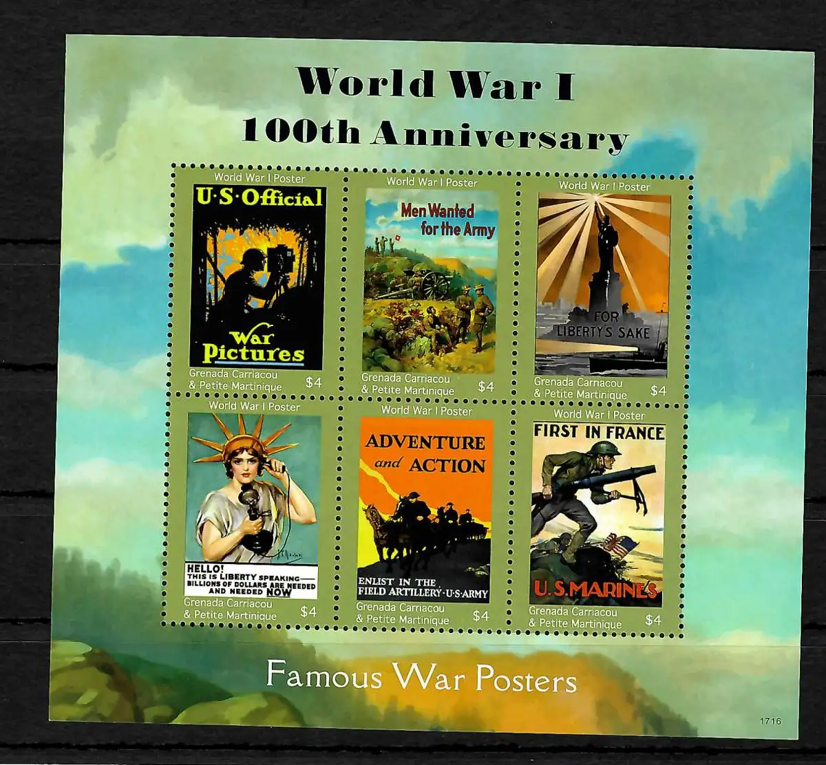 Grenada: WWI, 100. Jahrestag, Famous War Posters, postfrisch, Kleinbogen