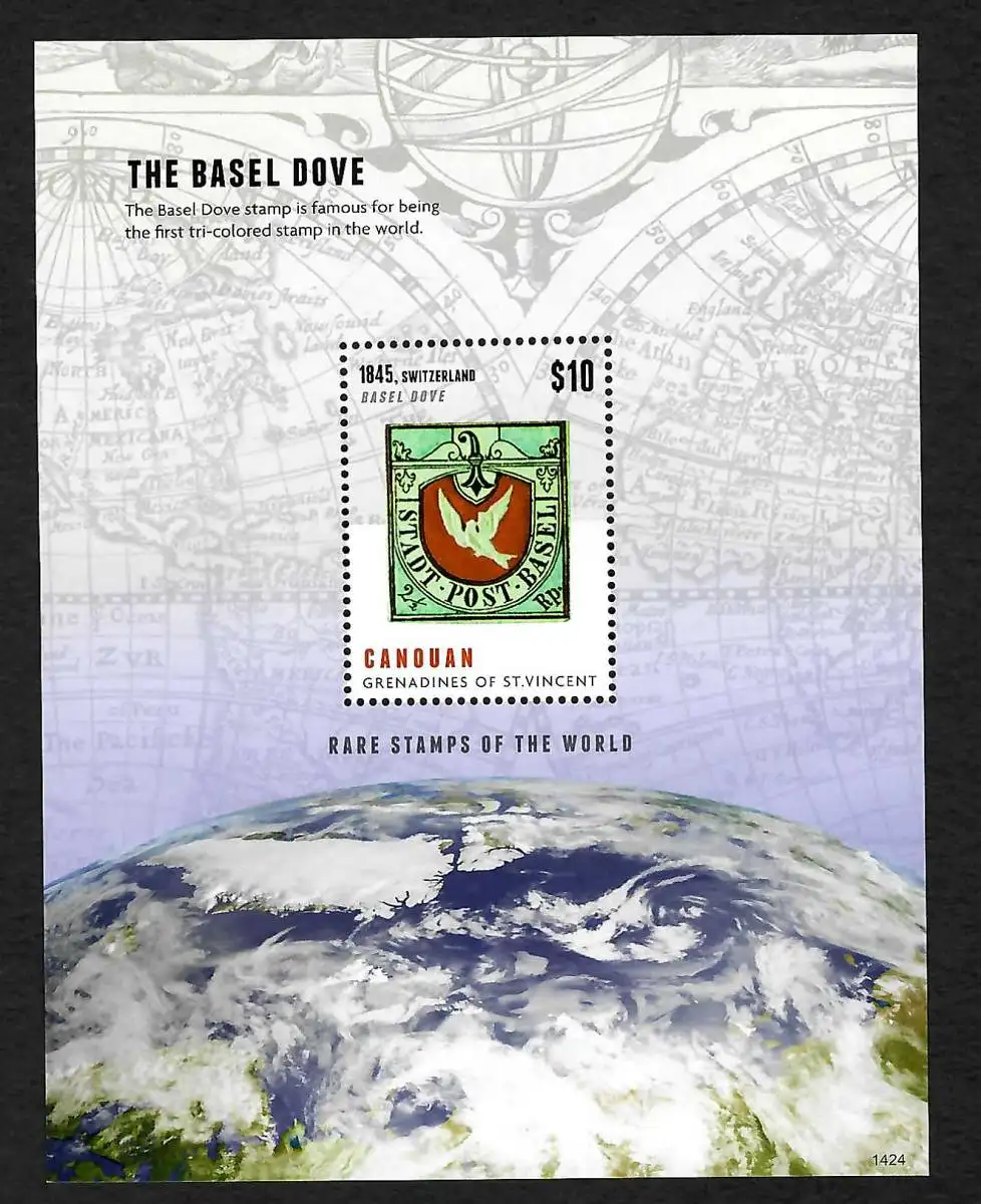 Grenadines of St. Vincent, Canouan: Basler Taube - Dreifarbig, postfrisch