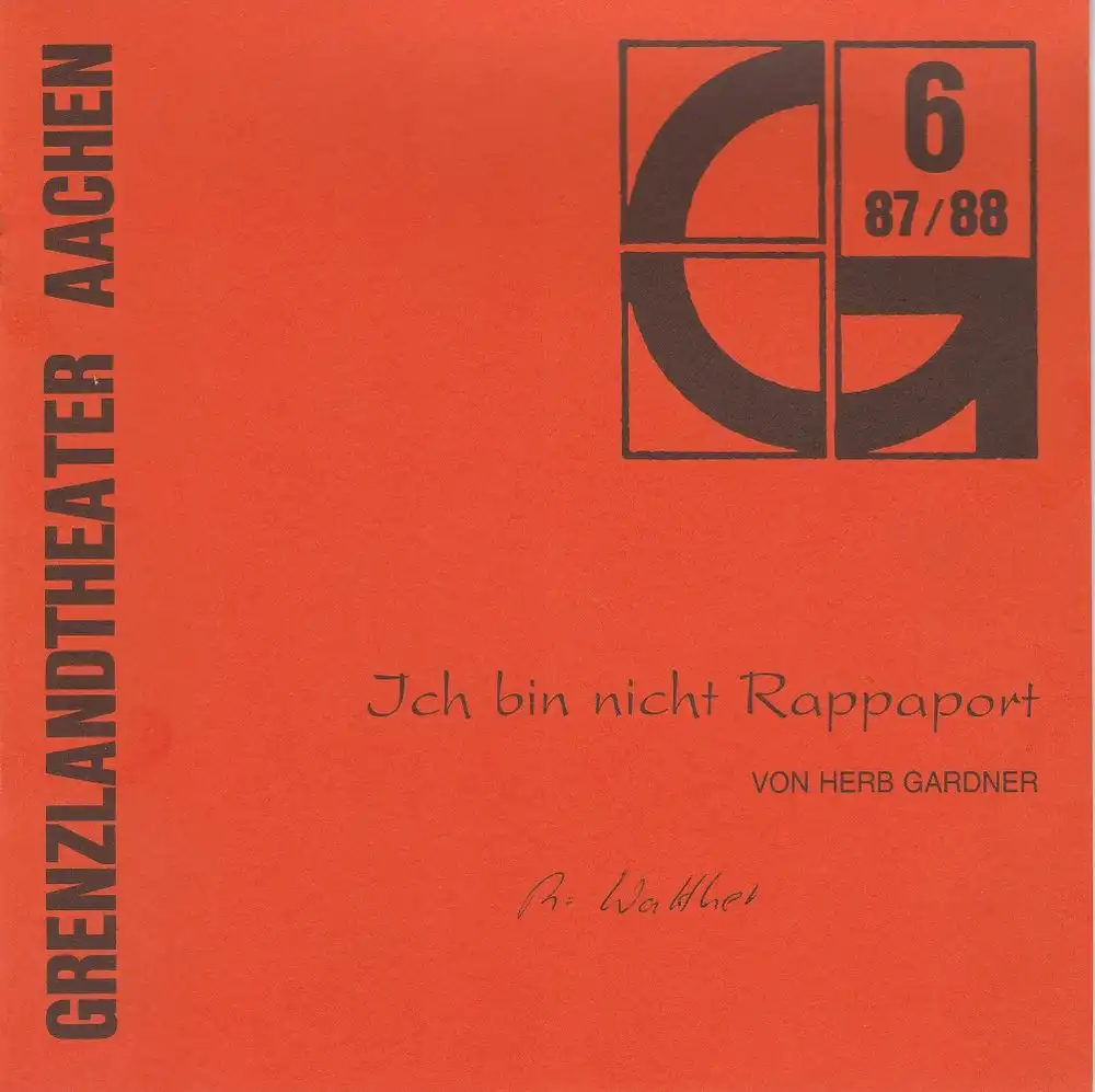 Grenzlandtheater Aachen, Karl-Heinz Walther, Manfred Langner: Programmheft Ich bin nicht Rappaport von Herb Gardner Premiere 23. Februar 1988 Spielzeit 1987 / 88 Heft 6.