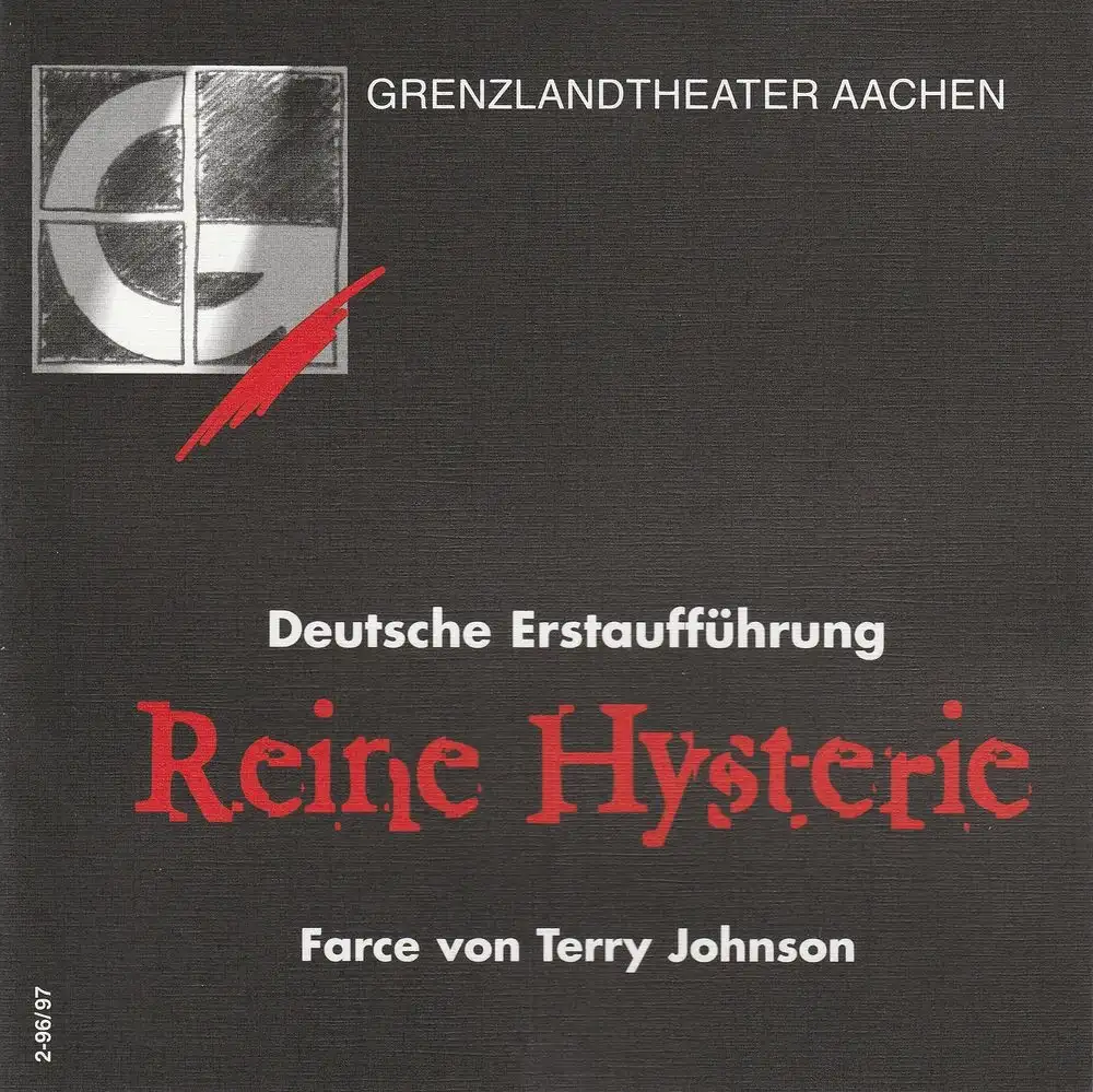 Grenzlandtheater Aachen, Manfred Langner, Martina Kullmann: Programmheft REINE HYSTERIE. Farce von Terry Johnson Spielzeit 1996 / 97 Heft 2.