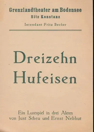 Grenzlandtheater am Bodensee, Sitz Konstanz. - Intendant: Fritz Becker. - Just Scheu und Ernst Nebhut: Dreizehn Hufeisen. Inszenierung: Hans Möbes, mit Heinz Herrmann, Hans Möbes, Senta Evrard und Josef Rada. / Friedrich Nietzsche: Das Lachen.