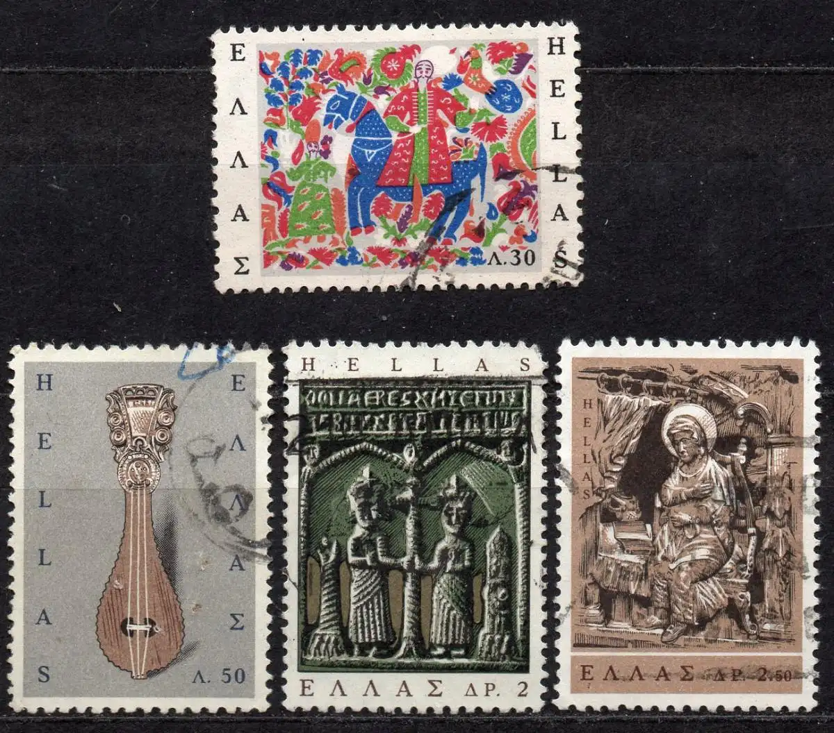 Griechenland, Mi-Nr. 922, 923, 926 + 927 gest., griechische Volkskunst