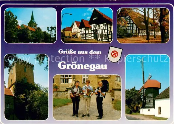 Groenegau_Region Kirche Fachwerkhaeuser Turm Musiktrio Muehle postalisch nicht gelaufen nach 1965 Erhaltung siehe scans [WerneD78] WernPID7