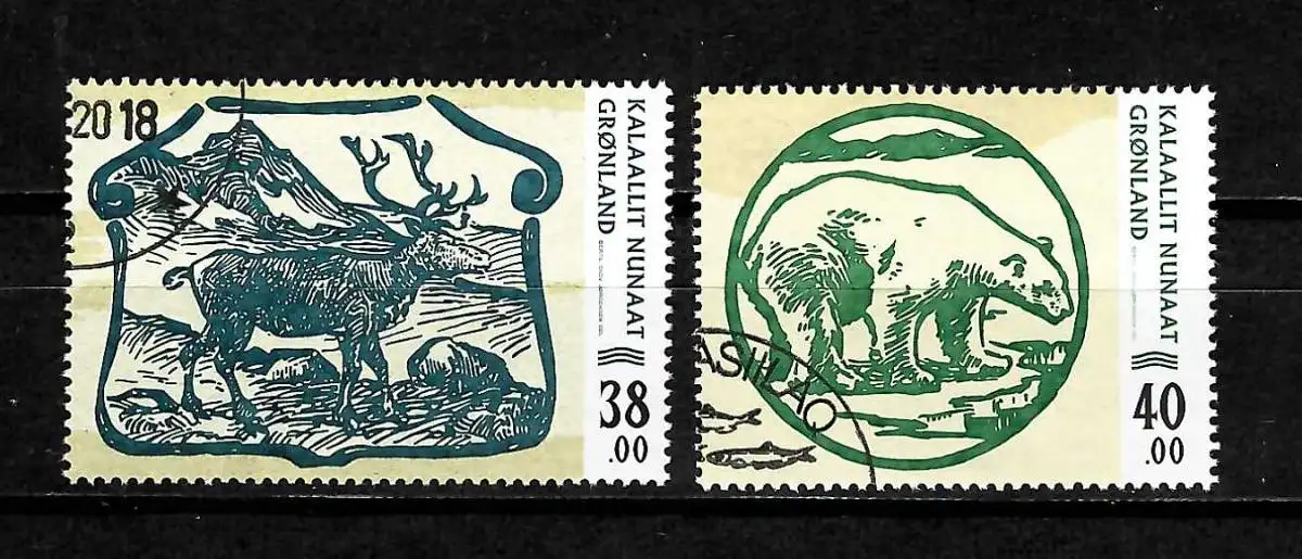Grönland: Alte Geldscheine mit Hirsch und Bär-Motiv, gestempelt