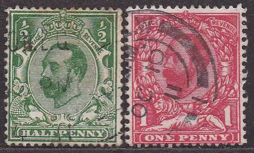 Großbritannien, Mi-Nr. 121 I + 122 I gest., König Georg V.