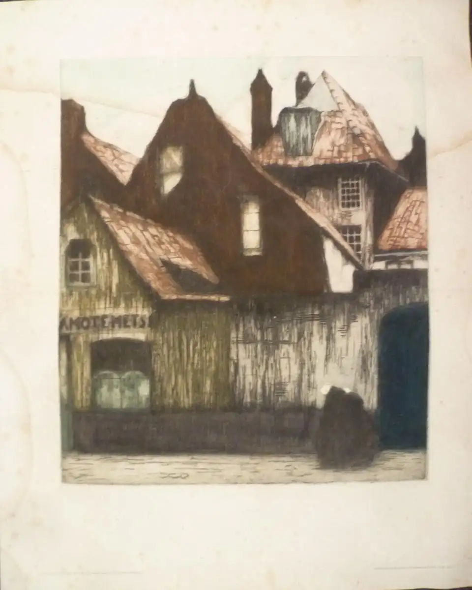 Julien Célos (Antwerpen 1884-1953), Die Tote Stadt (Brügge). Originalradierung (Druck des