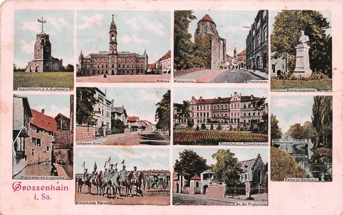 Grossenhain i. Sa. Rathaus Klosterruine Kupferberg Husaren Postkarte AK