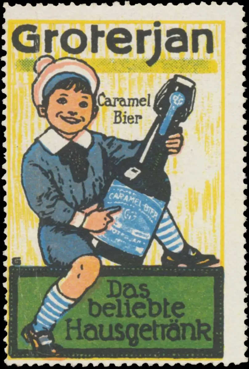 das beliebte Hausgetränk, Junge mit Bierflasche, Größe/Zustand: 6x4 , guter Zustand, Original alte Reklamemarke die seinerzeit für die Werbung benutzt wurde