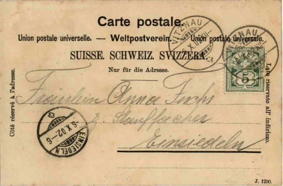 Danke. Alles Bestens. Können Sie mir allenfalls mitteilen, aus welchem Jahr die Postkarte stammt? Besten Dank.
