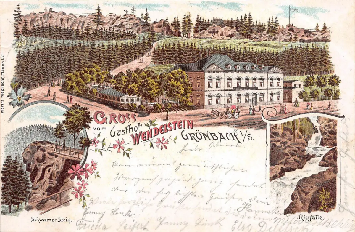 Grünbach Vogtland Sachsen Gasthof Wendelstein Lithographie 1902