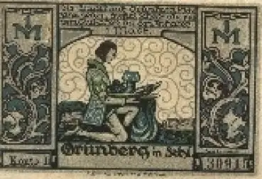 Grünberg Schlesien Notgeld Gutschein über 1 Mark Nr. 30915 um 1921