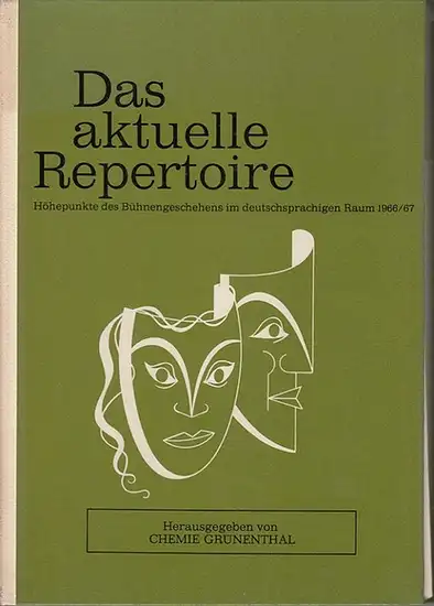 Freie Beschreibung: 28 x 19,5 cm. Beige und grüne O-Halbleinen-Mappe. Einliegend 10 Karten (Doppelblätter) mit ganzseitigen s/w Szenen-Abbildungen und Angaben zu aktuellen Theaterinszenierungen, auf 9 Karten wird zudem intensiv für die Medizin-Produkte der Chemie Grünenthal geworben. Guter Zustand