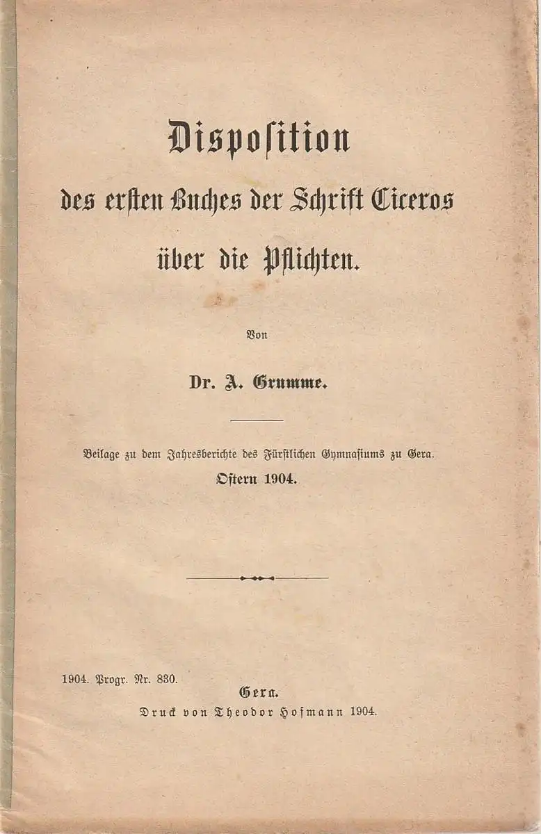 Grumme A: DISPOSITION DES ERSTEN BUCHES DER SCHRIFT CICEROS ÜBER DIE PFLICHTEN.