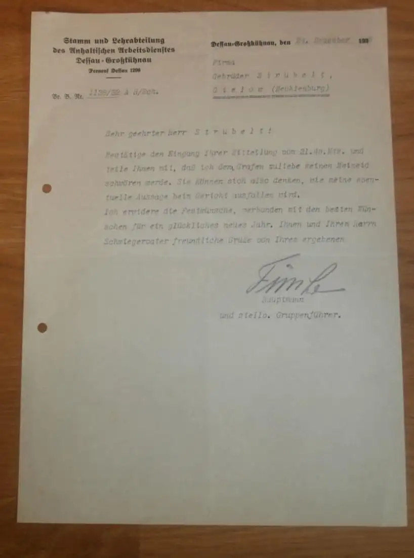 Gruppenführer - Stamm und Lehrabteilung des anhalt. Arbeitsdienstes Dessau Großkühnau , 1932 , altes Dokument !!!AZ9-i