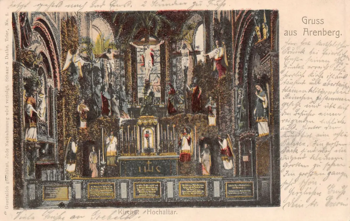 Gruss aus Arenberg Kirche, Hochaltar Postkarte 1904