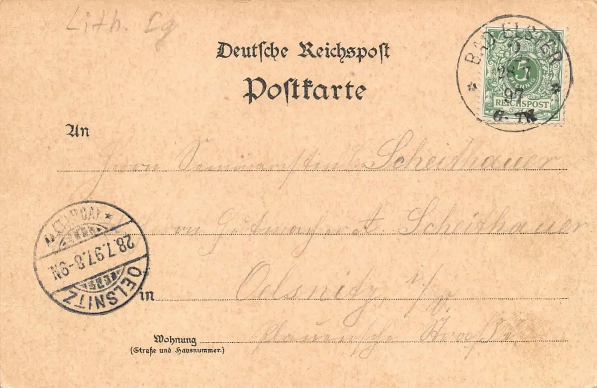 Rückseite: gelaufen 1897 von Bad Elster nach Oelsnitz