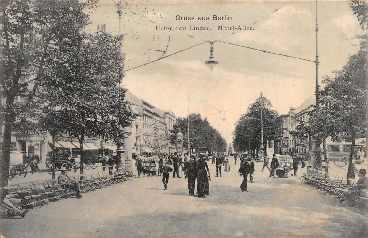 Gruss aus Berlin Unter den Linden Mittel-Allee AK 1907