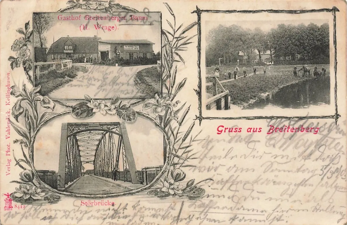 Gruss aus Breitenberg mit Gasthof und Störbrücke Schleswig-Holstein AK 1903
