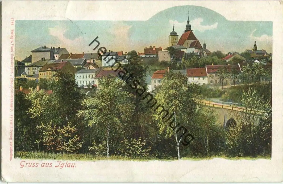 Gruss aus Iglau - Verlag Franz Schaller jun. Iglau - rückseitig Klebestelle und Papierschaden (E24850) gel. 1907