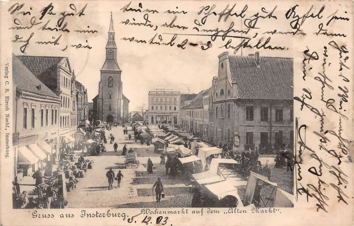 Gruss aus Insterburg (Tschernjachowsk) Wochenmarkt a. d. "Alten Markt" AK 1903